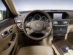 In the interior, features more than MercedesSport E-Class is a sport grippy four-spoke steering wheel with perforated leather and contrast the silver lining is available with optional paddle shift and a heater, a stainless steel pedal cluster, stainless steel entrance panels illuminated by white and bearing the logo MercedesSport , and black velours floor mats with silver borders and contrast stitching, logo also MercedesSport.
